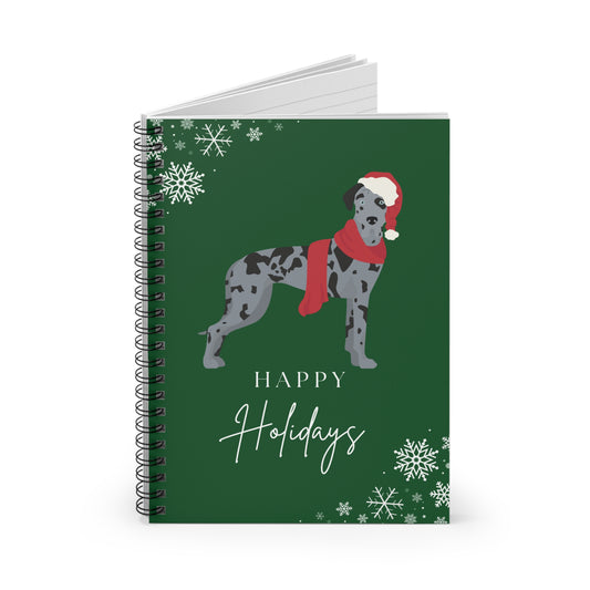 Happy Holidays Great Dane College Ruled Spiral Notebook
