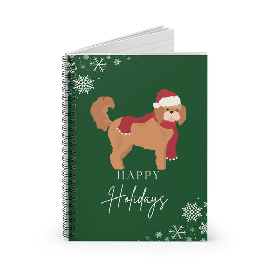 Happy Holidays Poodle Mix College Ruled Spiral Notebook