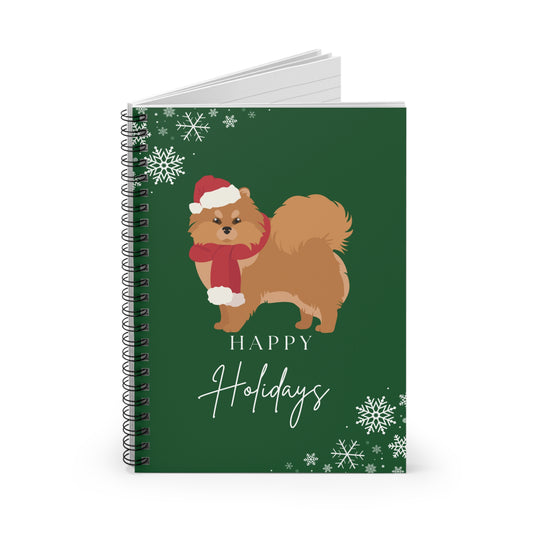 Happy Holidays Pomeranian College Ruled Spiral Notebook