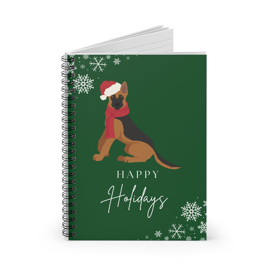 Happy Holidays German Shepherd College Ruled Spiral Notebook