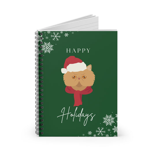 Happy Holidays Persian Cat College Ruled Spiral Notebook
