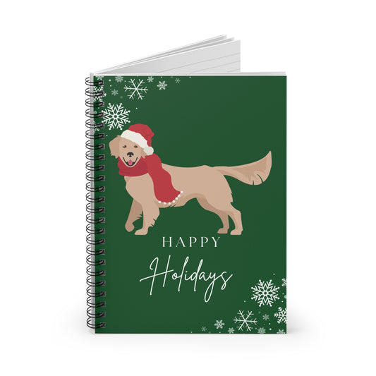 Happy Holidays Golden Retriever College Ruled Spiral Notebook