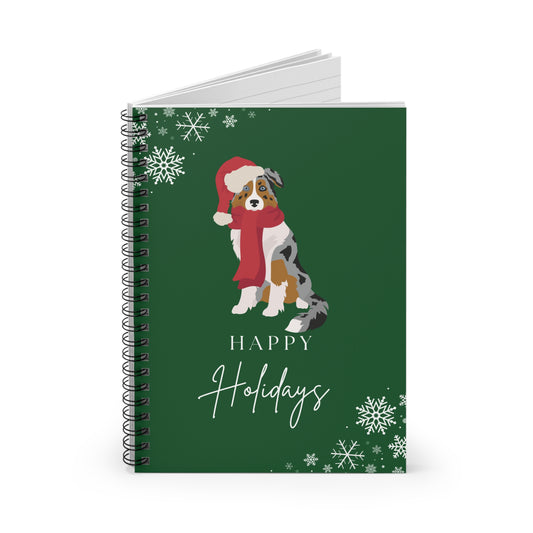 Happy Holidays Australian Shepherd College Ruled Spiral Notebook
