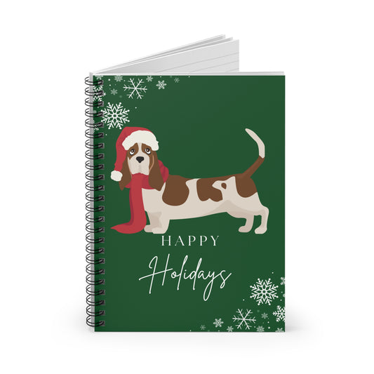Happy Holidays Basset Hound College Ruled Spiral Notebook