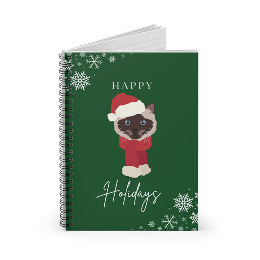 Happy Holidays Birman Cat College Ruled Spiral Notebook