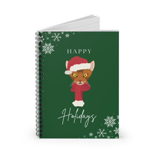 Happy Holidays Abyssinian Cat College Ruled Spiral Notebook