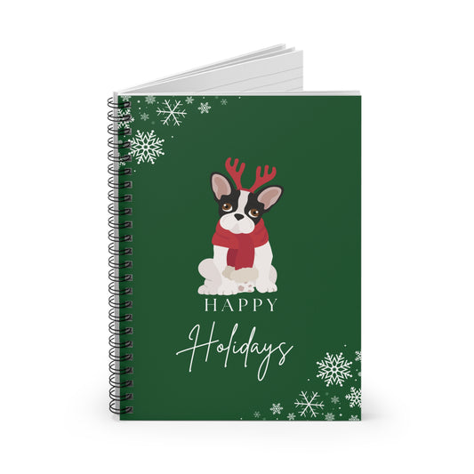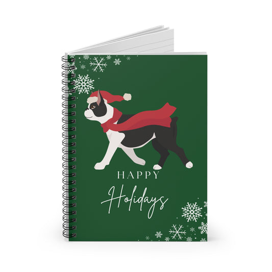 Happy Holidays Boston Terrier College Ruled Spiral Notebook