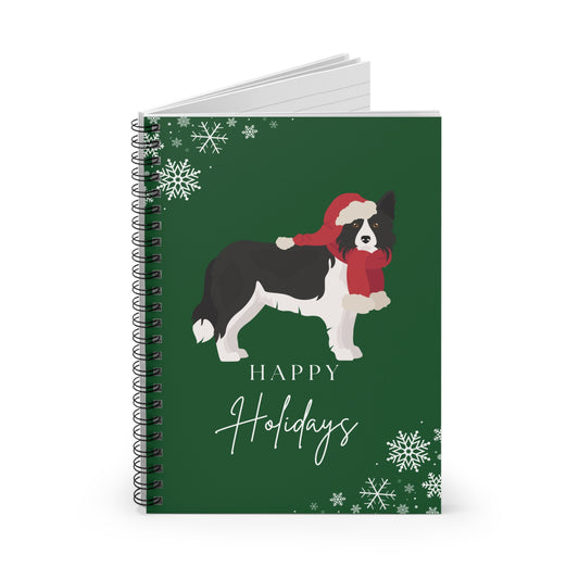 Happy Holidays Border Collie College Ruled Spiral Notebook