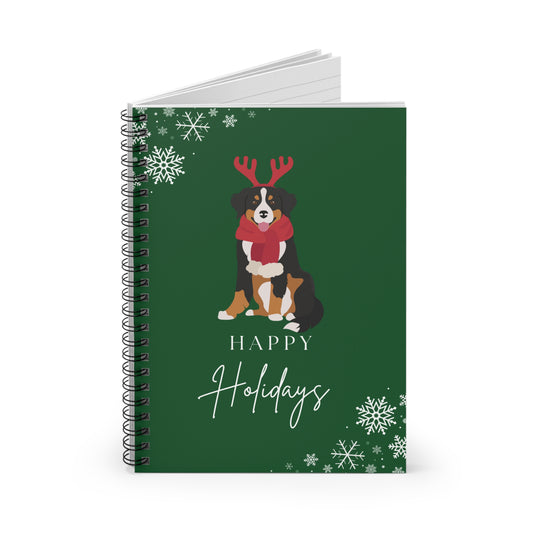 Happy Holidays Bernese Mountain Dog College Ruled Spiral Notebook